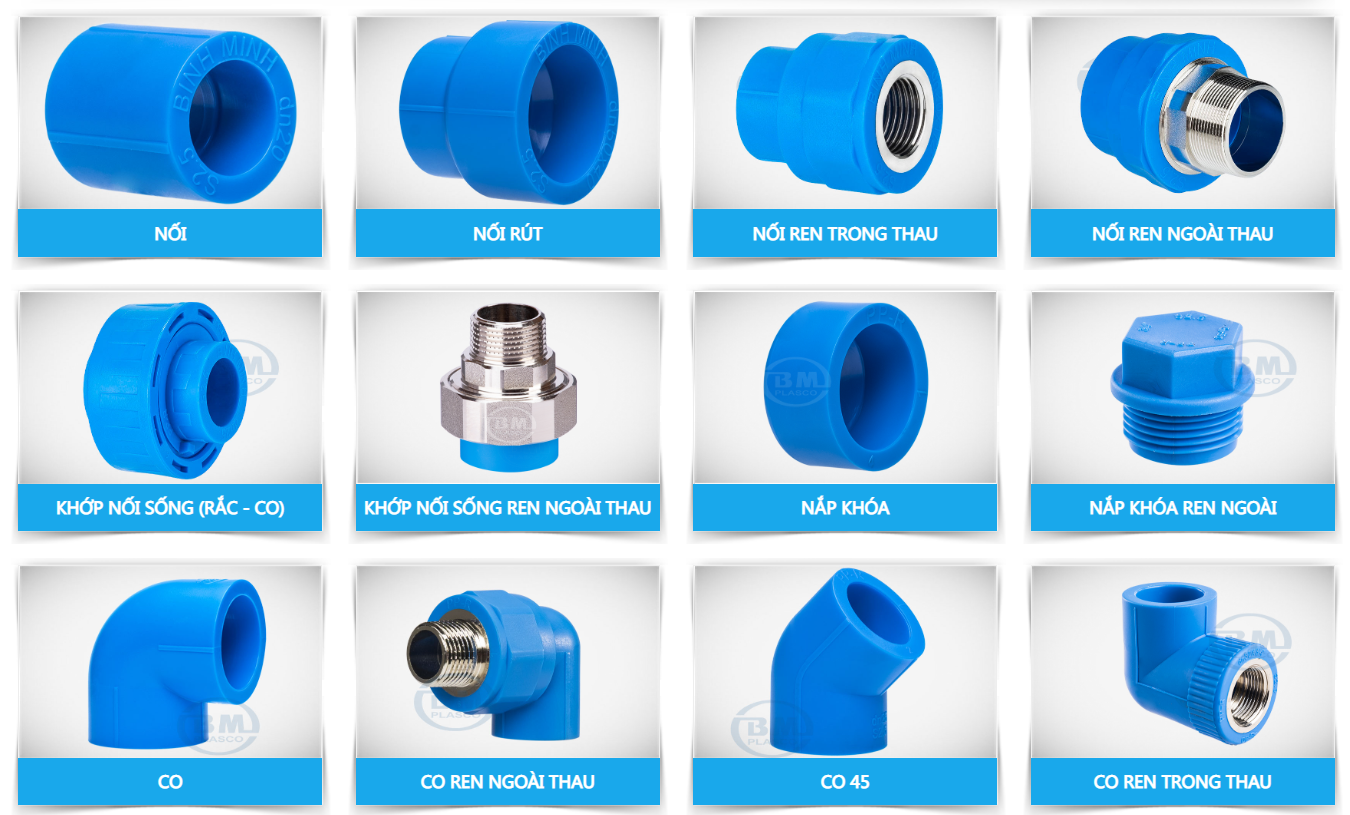 Phụ kiện PP-R Bình Minh được lấy từ chính công ty sản xuất ống Nhựa Bình Minh, với chất liệu và vật liệu từ hợp chất nhựa Polypropylene Random Copolymer, PP-R80.