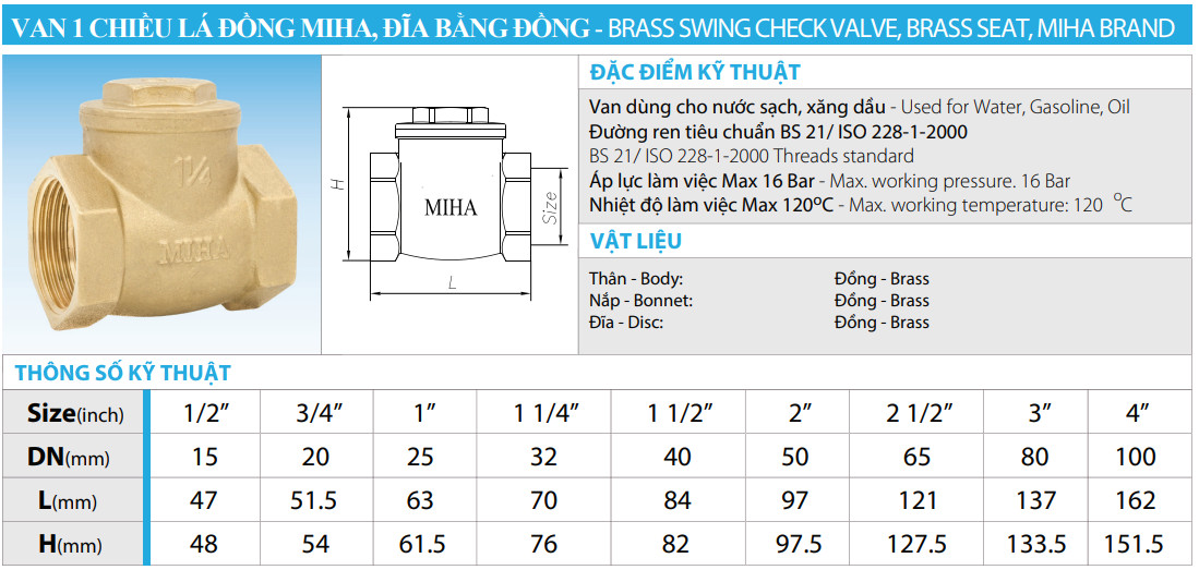 Công ty QUANG MINH của chúng tôi đang phân phối sản phẩm Van 1 chiều đồng lá lật của nhiều thương hiệu như Minh hòa, Sanwa, Kzit. Sản phẩm có đầy đủ chứng chỉ CO, CQ và đã được kiểm định. Quang Minh cam kết sẽ luôn có giá tốt nhất cho khách hàng.